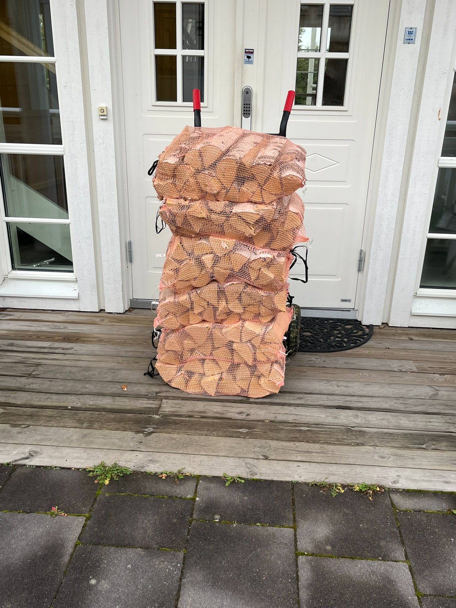Vi säljer bara björkved från egen skog i Norrland med full kontroll på hela processen, från avverkning, klyvning, torkning, paketering och leverans hem till dig.